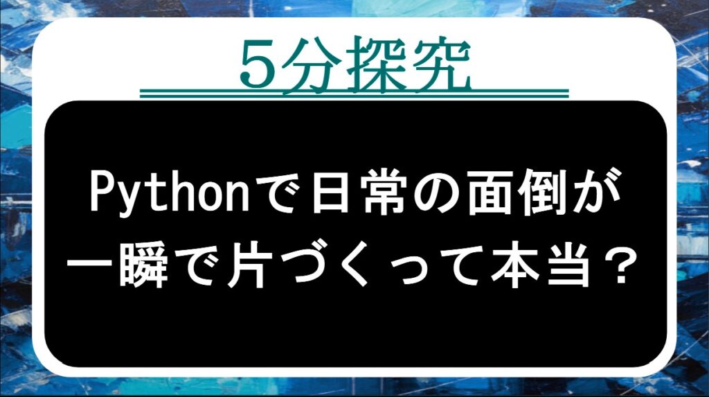 【5分探究】Pythonで日常の面倒が一瞬で片づくって本当?