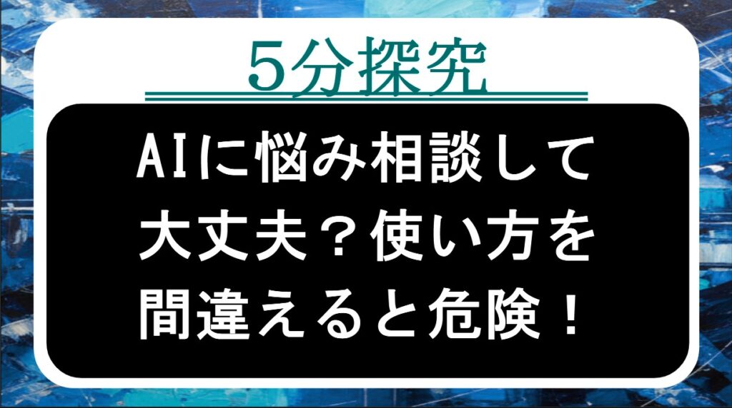 【5分探究】AIに悩みを相談しても大丈夫?使い方を間違えると危険!