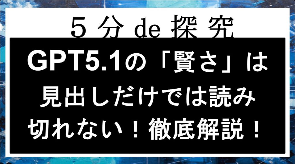 【5分de探究】GPT 5.1の「賢さ」は見出しだけでは読み切れない!徹底解説!
