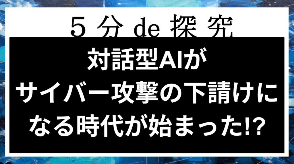 【5分de探究】対話型AIがサイバー攻撃の下請けになる時代はもう始まっている!