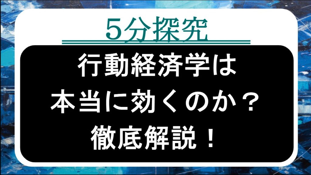 行動経済学【5分探究】行動経済学は本当に効くのか?徹底解説! 【5分探究】行動経済学は本当に効くのかを疑いから始める 流行のテクニックを並べる前に、どこまで効くのかを点検しましょう。この記事は、行動経済学の限界と使いどころを、検証の目線で整理します。 損失回避性やナッジは魅力...行動経済学