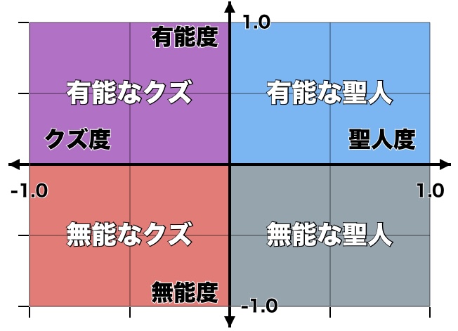 評価軸は二つ。能力(有能か無能か)人間性(聖人かクズか)