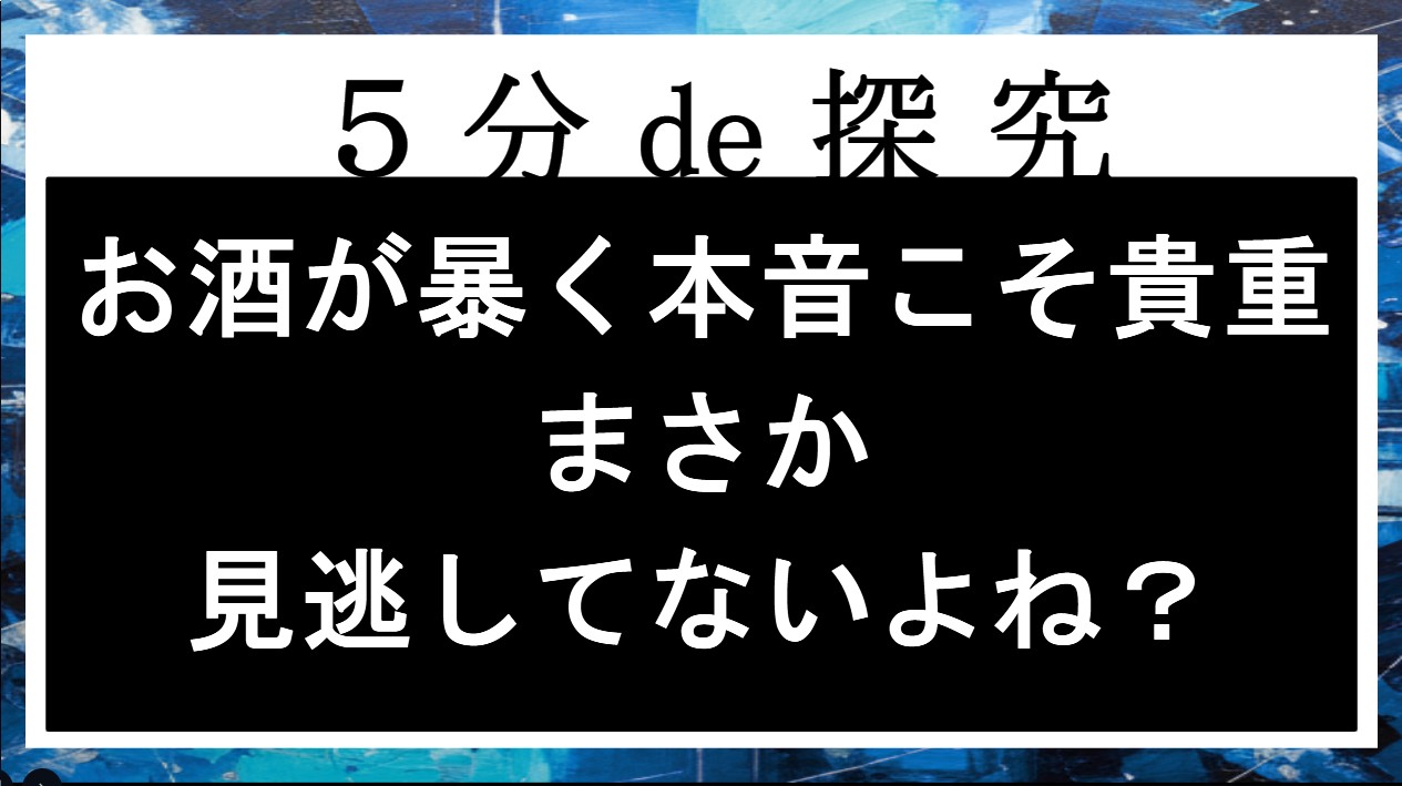 【5分de探究】お酒が暴く本音こそ貴重。まさか見逃してませんよね?
